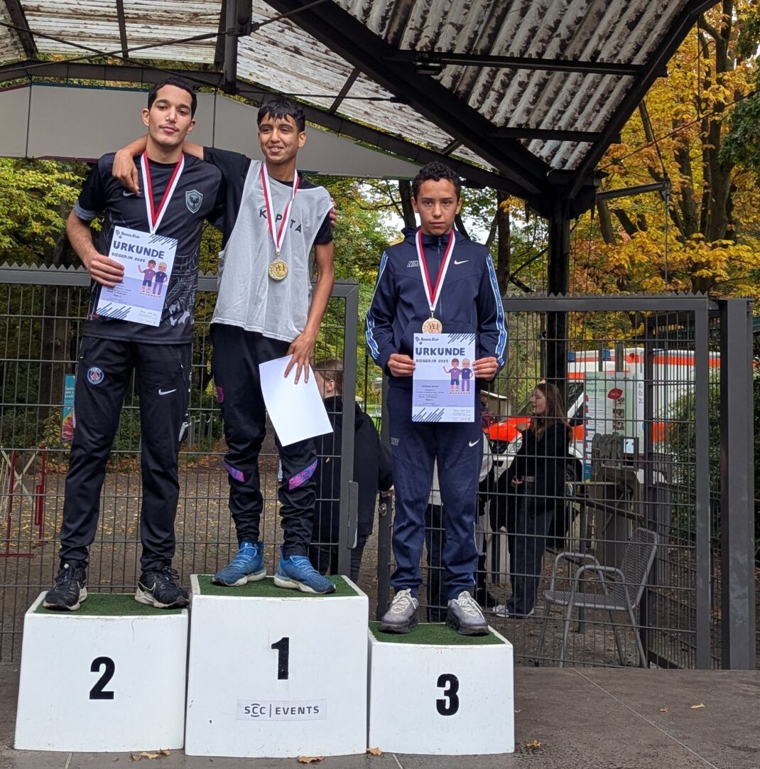 Am 16.10.2025 trafen sich 56 Schülerinnen und Schüler der Zuckmayer Schule zum Waldlauf im Britzer Garten. Gelaufen wurde ein Rundkurs über 3,2 Kilometer durch den Park. Mit etwas Aufregung starteten die ersten Mädchen von uns 11.41 Uhr. Aufregung, Regen, Seitenstiche, Erschöpfung. Glücksgefühle- alles war mit dabei an diesem Tag. Alle schaffen es ins Ziel- Herzlichen Glückwunsch an alle Finisher! Ihr könnt wirklich stolz sein. Das Highlight des Tages ist die Titelverteidigung von Hamza (8c). Er holt auch in diesem Jahr Platz 1 in der Altersklasse 2011 in einer Spitzenzeit von 11 Minuten und 38 Sekunden. Dicht dahinter Hassan (8b) auf Platz 6. Auch Walid (7d) liefert ein super Ergebnis auf Platz 13 in der AK 2012. Alle drei Top-Läufer qualifizieren sich für das berlinweite Finale im Frühjahr. Glückwunsch und gute Erholung wünschen wir!